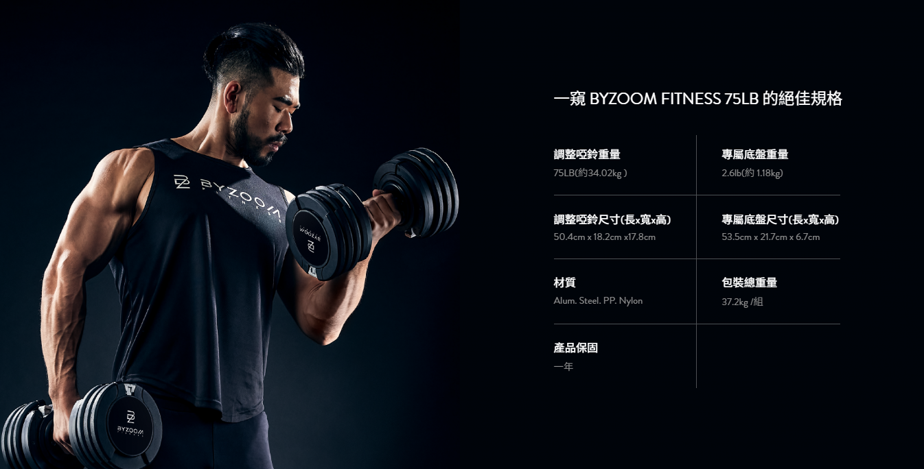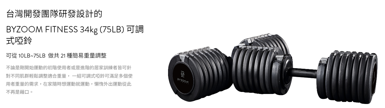 • Byzoom Fitness 可調式啞鈴 34kg (75LB) 21段重量秒速調整 x1
