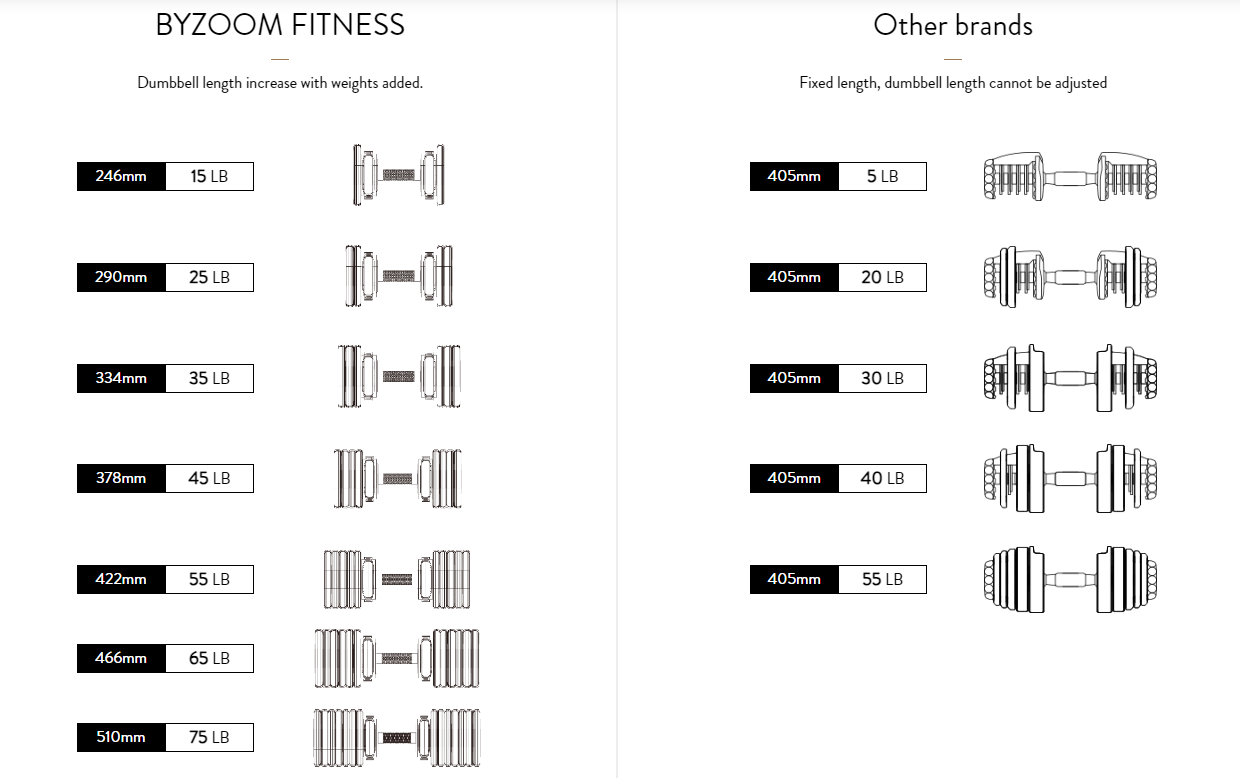 • 啞鈴長度隨重量作改變,不受固定長度牽絆