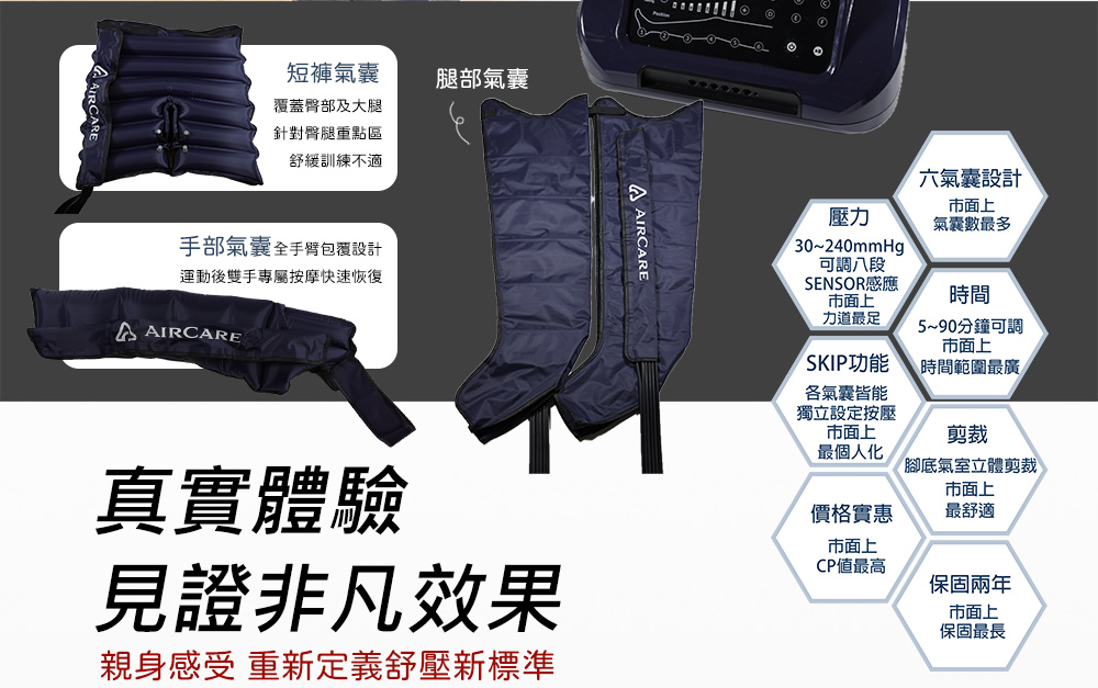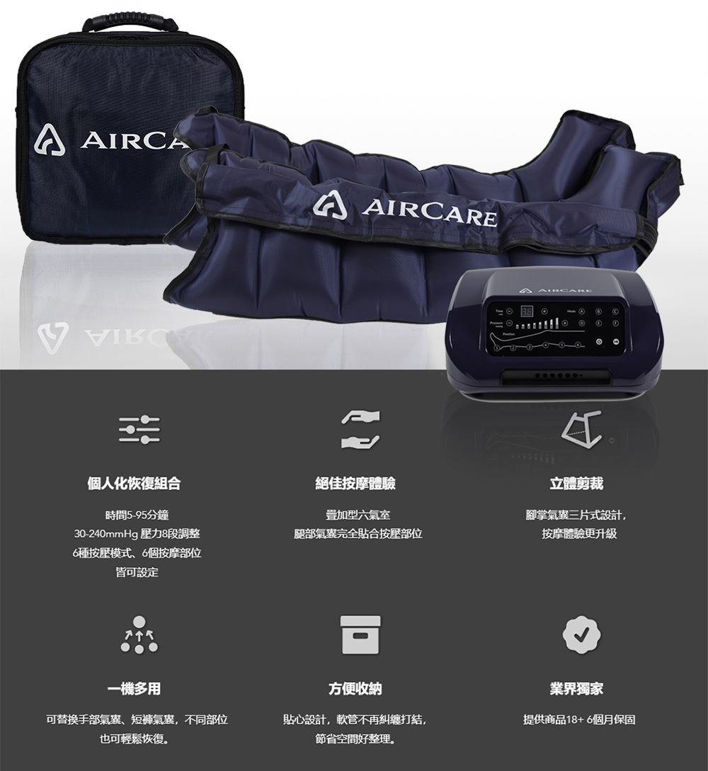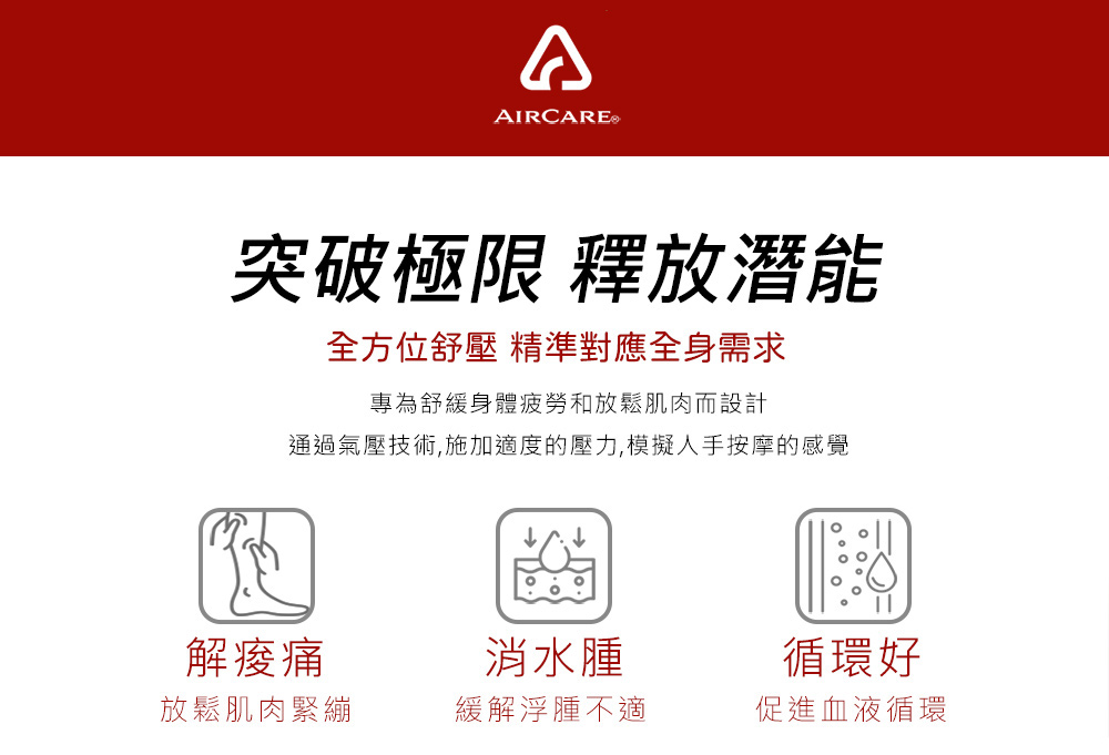 AirCare 空氣按摩器都能在您需要的時候,提供高效熱身與恢復按摩,