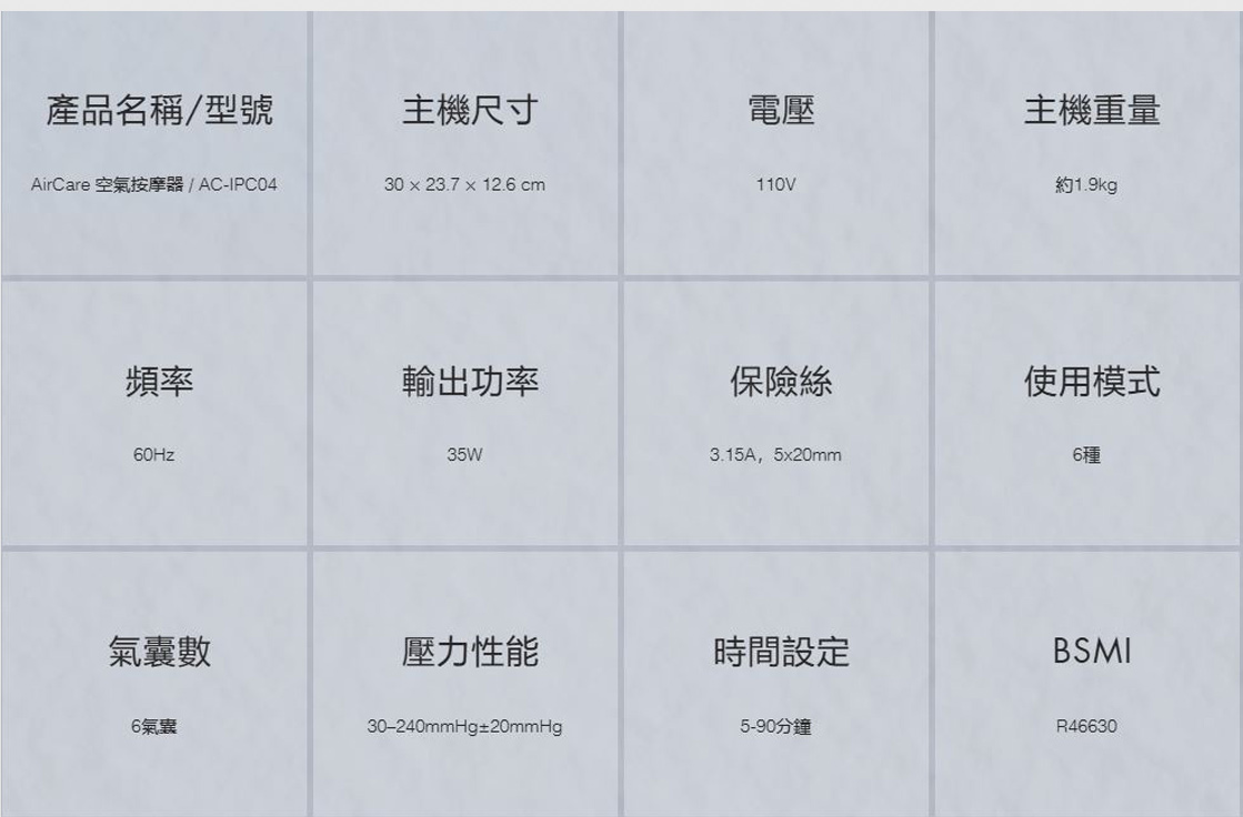 AirCare 空氣按摩器 專業版 AC-IPC04